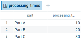 If your data is in an external database, first import it into the built-in AnyLogic database. Assume the processing times for each part are stored in a database table called processing_times: