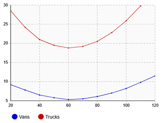 Plot charts visualize how two variables change together by plotting X-axis values against Y-axis values. While time plots use time as one variable, regular plot charts assign independent variables to both axes. Multiple data sources (dynamic values or data sets) can be displayed simultaneously in a single coordinate space.