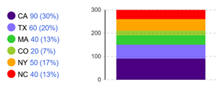 Stack charts display the cumulative contribution of multiple data items to a total as stacked bars, with the first added data item at the bottom. The bar sizes are proportional to the corresponding data item values. Negative values are not supported, and an error will be thrown if you attempt to provide a negative data item value.