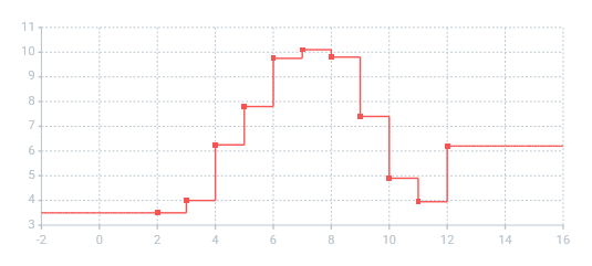 - Step — The function value between two points is the same as in the point with lower argument value.