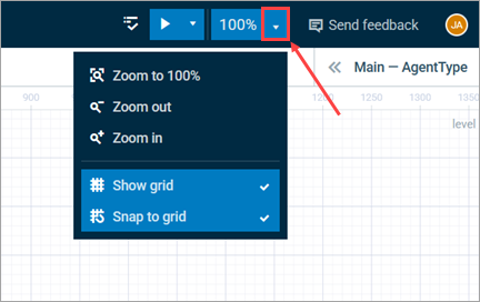 The graphical editor can display a grid, which supports snapping elements to it and simplifies arranging and aligning shapes. By default, the grid is shown, and snapping elements to it is enabled.