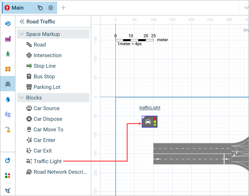 Road Traffic Library palette to the agent diagram that contains an intersection.