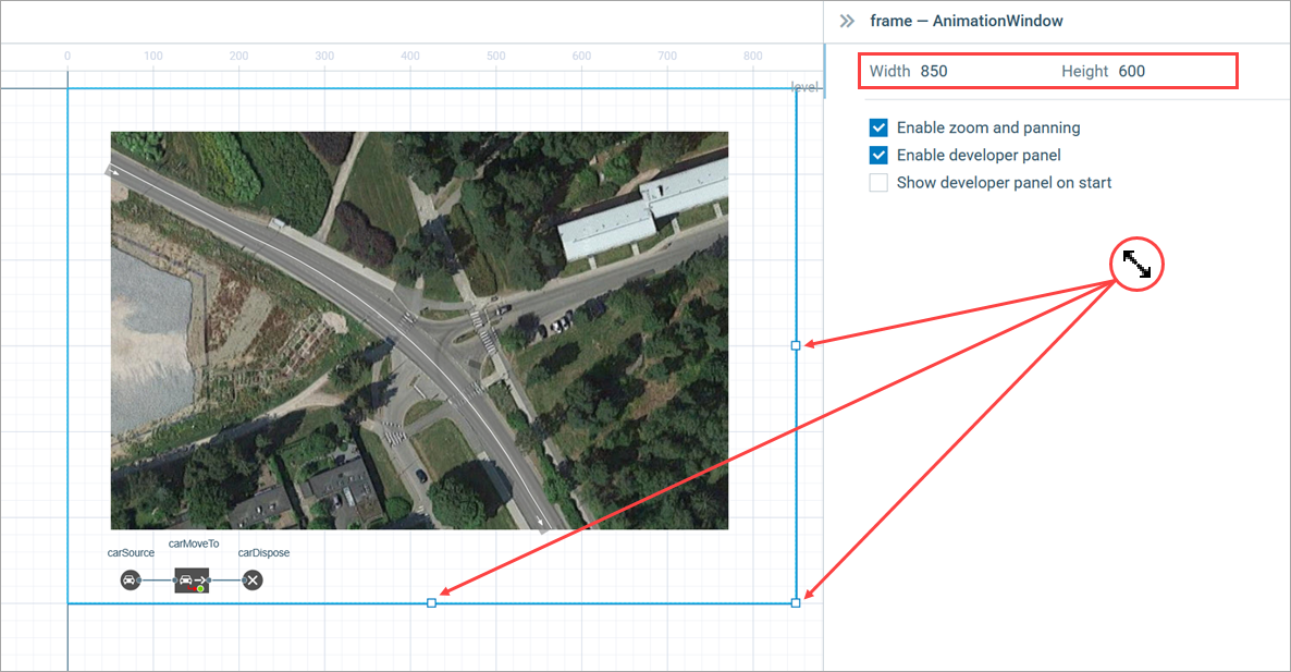 - Now you can see if the drawn road matches the road on the map. To adjust your road, use already existing points or double-click anywhere on any segment to add new ones. You can learn more about drawing in AnyLogic 9 on the Drawing help page.