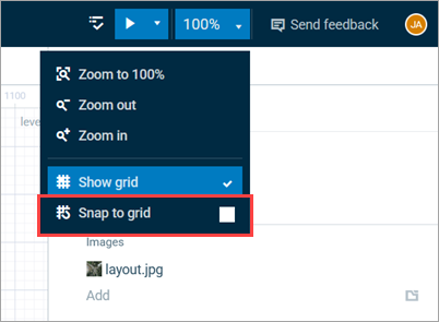 Before you start drawing, we advise you to switch off the grid alignment in the graphical editor. To do so, clear the Snap to grid box: