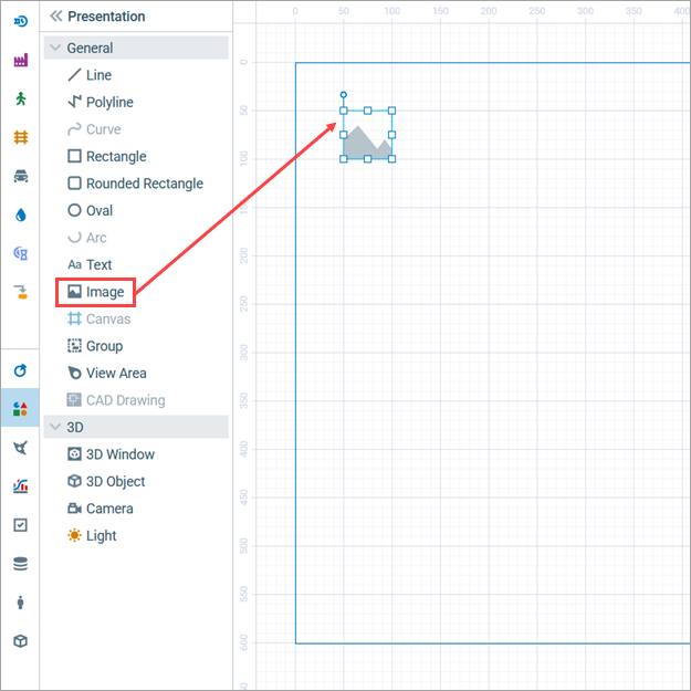When you drop the element icon on the graphical diagram, the file browser opens automatically. Open the folder where you just saved the layout image, select the file, and then click Open in the dialog box. You will see the picture displayed in the graphical editor:
