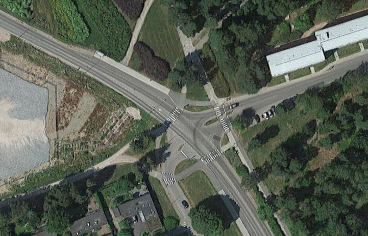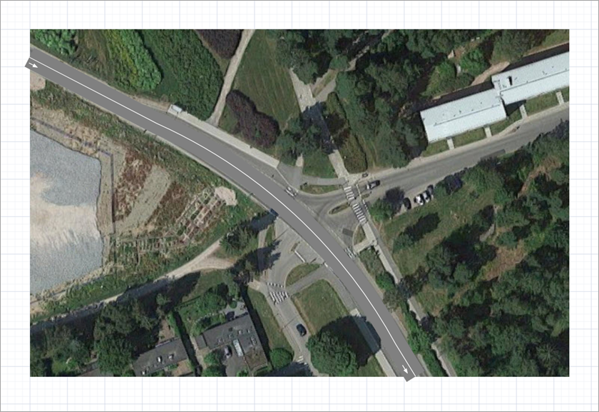 When defining road networks in AnyLogic, you can draw roads, intersections, and add other space markup elements, such as bus stops, stop lines or parking lots. We will start by drawing Tapiolavägen, placing it directly on top of the corresponding road on the picture.