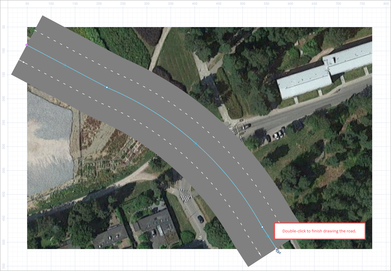 Eventually you will see the drawn road. It should look like the one in the figure below. - Locate the