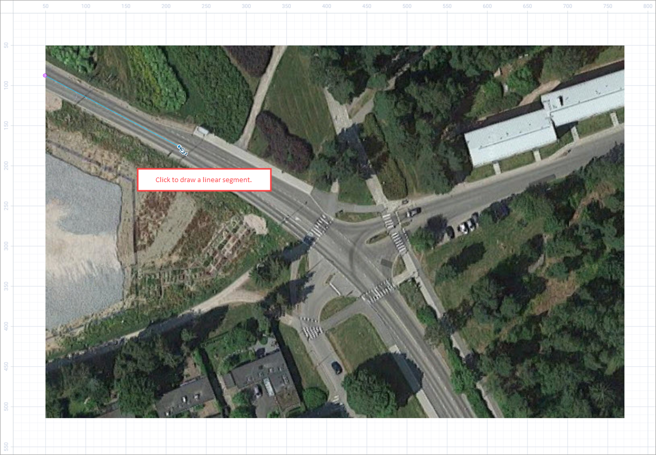 Continue drawing the road step by step. Our road starts straight. To complete a linear segment, click the place where you want to put its end point (see figure below).