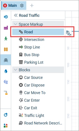 Road element in the Space Markup section of the Road Traffic Library palette. The icon of the element should turn into