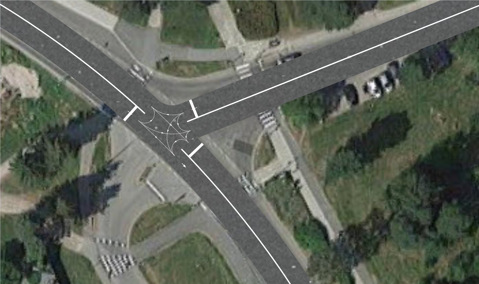 Drag the end points of the other two roads in a similar way. Adjust all the roads until they take the shape of the actual intersection.