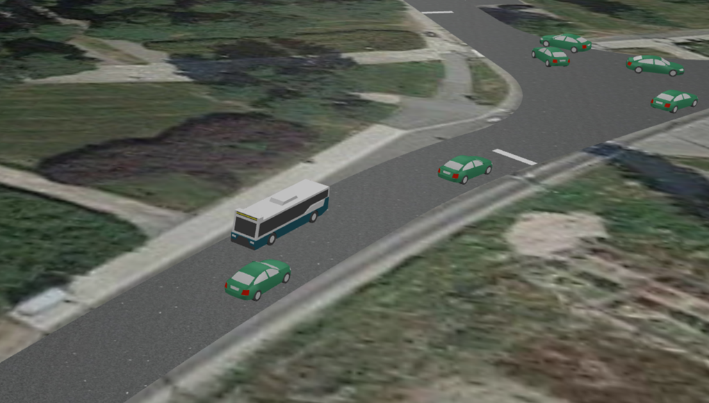Currently our model contains automobiles only. In this step, we will add buses. They will move south to north along Tapiolavägen, making a stop at the bus stop after the intersection.