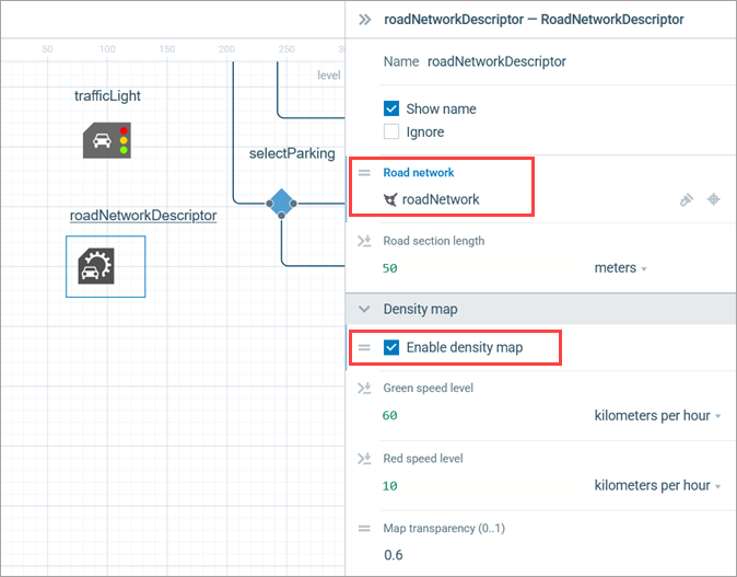 Open the Density map section of the roadNetworkDescriptor properties and select the Enable density map checkbox.