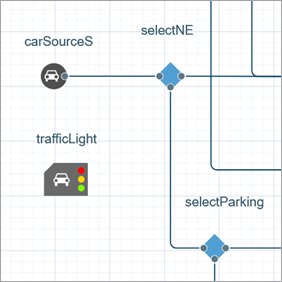 Road Network Descriptor element to the graphical diagram from the Road Traffic Library palette. Just like with the traffic lights, there is also no need to connect this element to any other flowchart blocks.