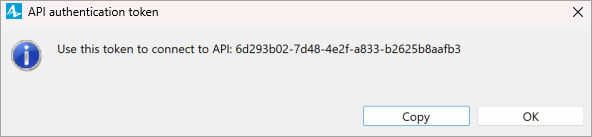 AnyLogic then generates a dialog which shows you the connection token. You will use this token to later communicate your custom Python script with AnyLogic workspace.