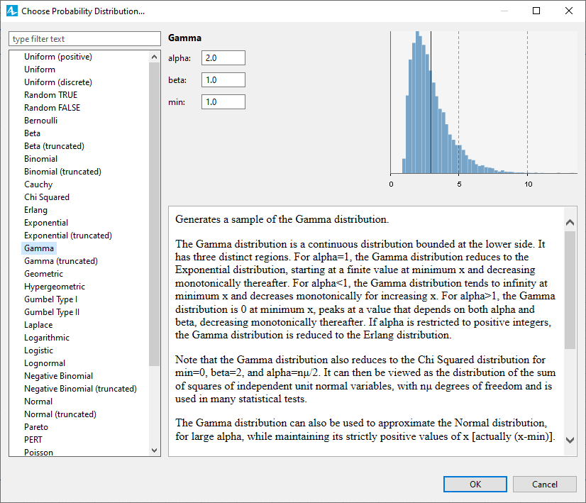 AnyLogic provides users with a handy visual wizard that lists and illustrates all the supported probability distributions.