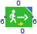 AnyLogic animates all flowcharts at model runtime. The color scheme for most of the Pedestrian Library blocks in the model window includes three colors (silver, lime green, and forest green) to distinguish the current state of the block: