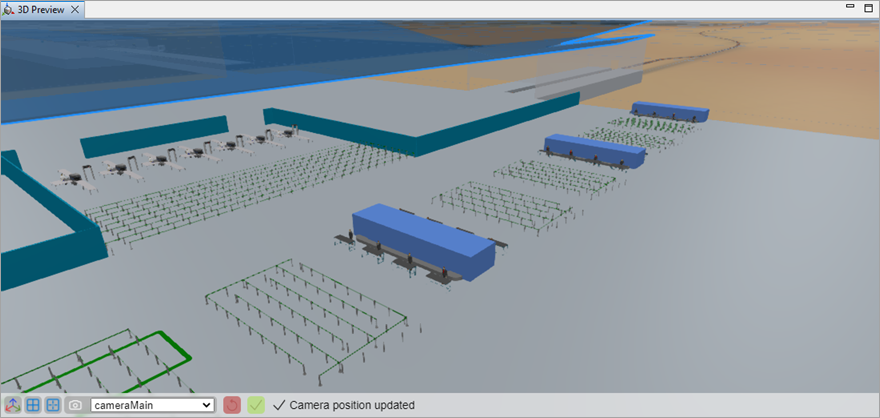 Demo model: Multiple 3D Windows and Cameras Open the model page in AnyLogic Cloud. There you can run the model or download it (by clicking Model source files). Demo model: Multiple 3D Windows and CamerasOpen the model in your AnyLogic desktop installation.To add a camera
