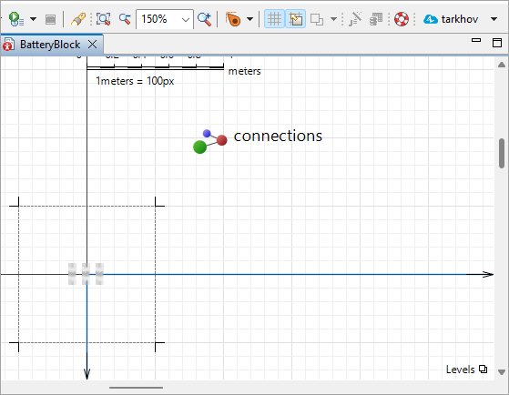 BatteryBlock graphical editor select the Scale element and set the Ruler length corresponds to: 1 meter.