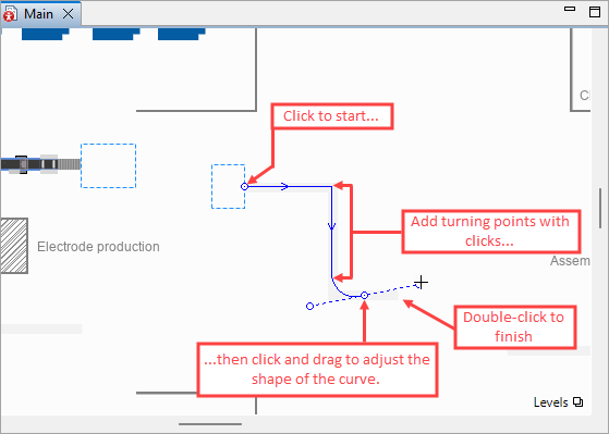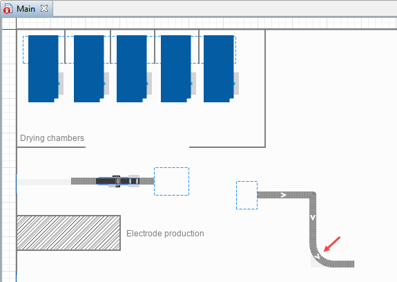 - To draw the last segment and finish drawing the conveyor, double-click at the end point of the conveyor.