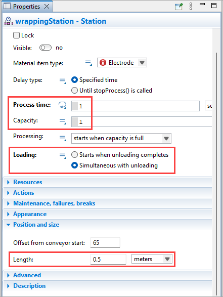 wrappingConveyor which will move them to the wrapping station. Specifically, we want the electrodes to appear at the conveyor’s starting point. We will use the conveyor’s API to obtain the coordinates of this point.
